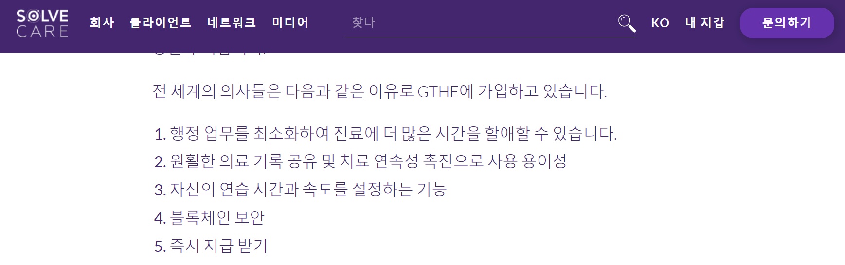 솔브케어(SOLVE)는 글로벌 헬스케어 의료서비스 플랫폼입니다. 의료 관련 코인으로는 예전에 소개드렸던 메디블록, 휴먼스케이프가 있는데 메디블록은 의료 정보를 안전하게 관리할 수 있는 의료 정보 플랫폼이며 휴먼스케이프는 특히 희귀난치성 질환을 가진 환자들의 건강 데이터를 수집하는 데 중점을 둔 코인입니다.