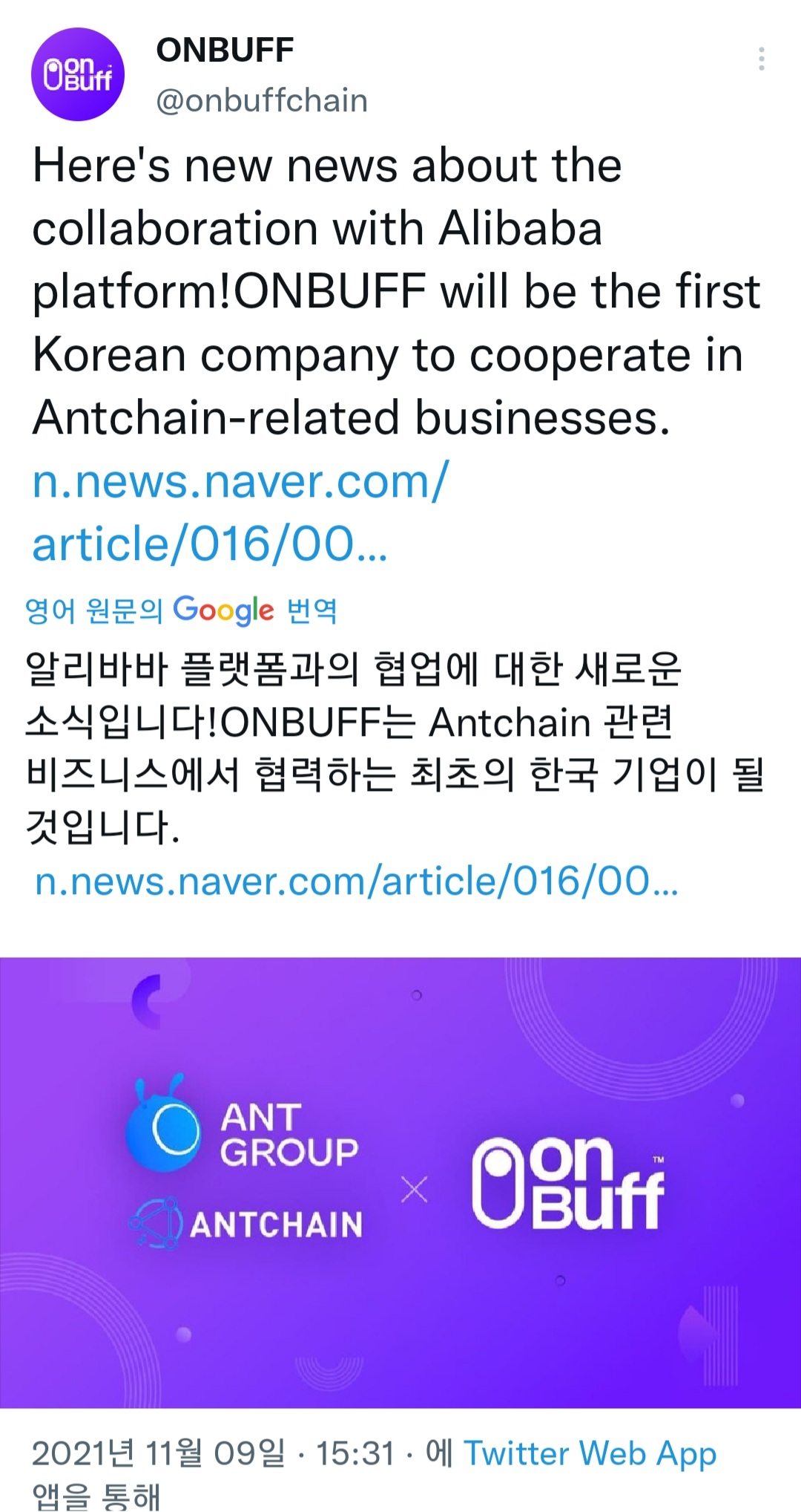 온버프 두번째 호재는 21년 11월, SNK(사우디아라비아 무함마드 빈살마 알사우드 왕세자가 인수한 게임기업)와 온버프가 NFT 알리바바 플랫폼에 3단계로 진출한다는 것인데 이 호재와 함께 거래량을 동반한 채 온버프 코인의 가격도 올랐습니다.