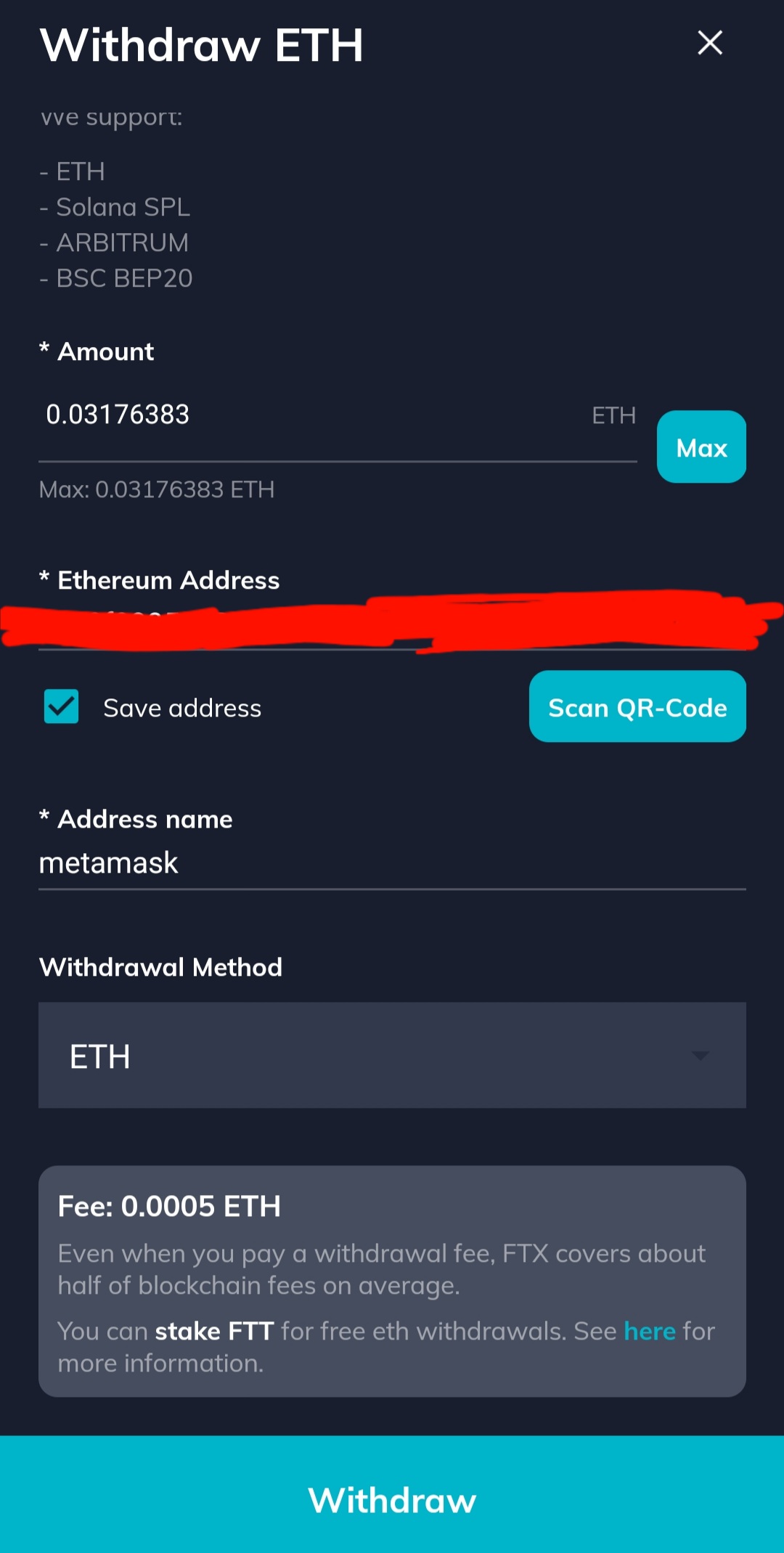 : FTX 거래소-wallet-withdraw-ETH 검색