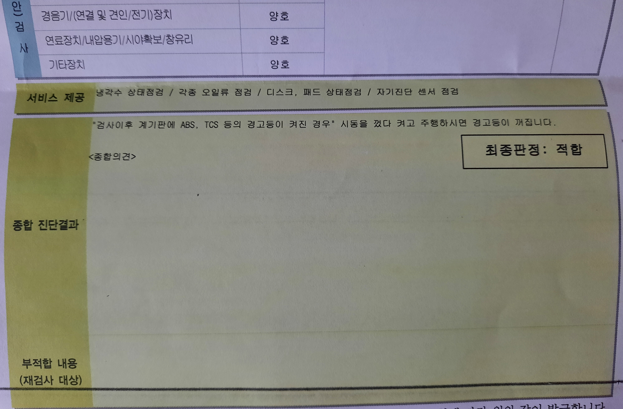 종합 진단결과로 적합 판정 받으시고 안전운전하시길 바랍니다