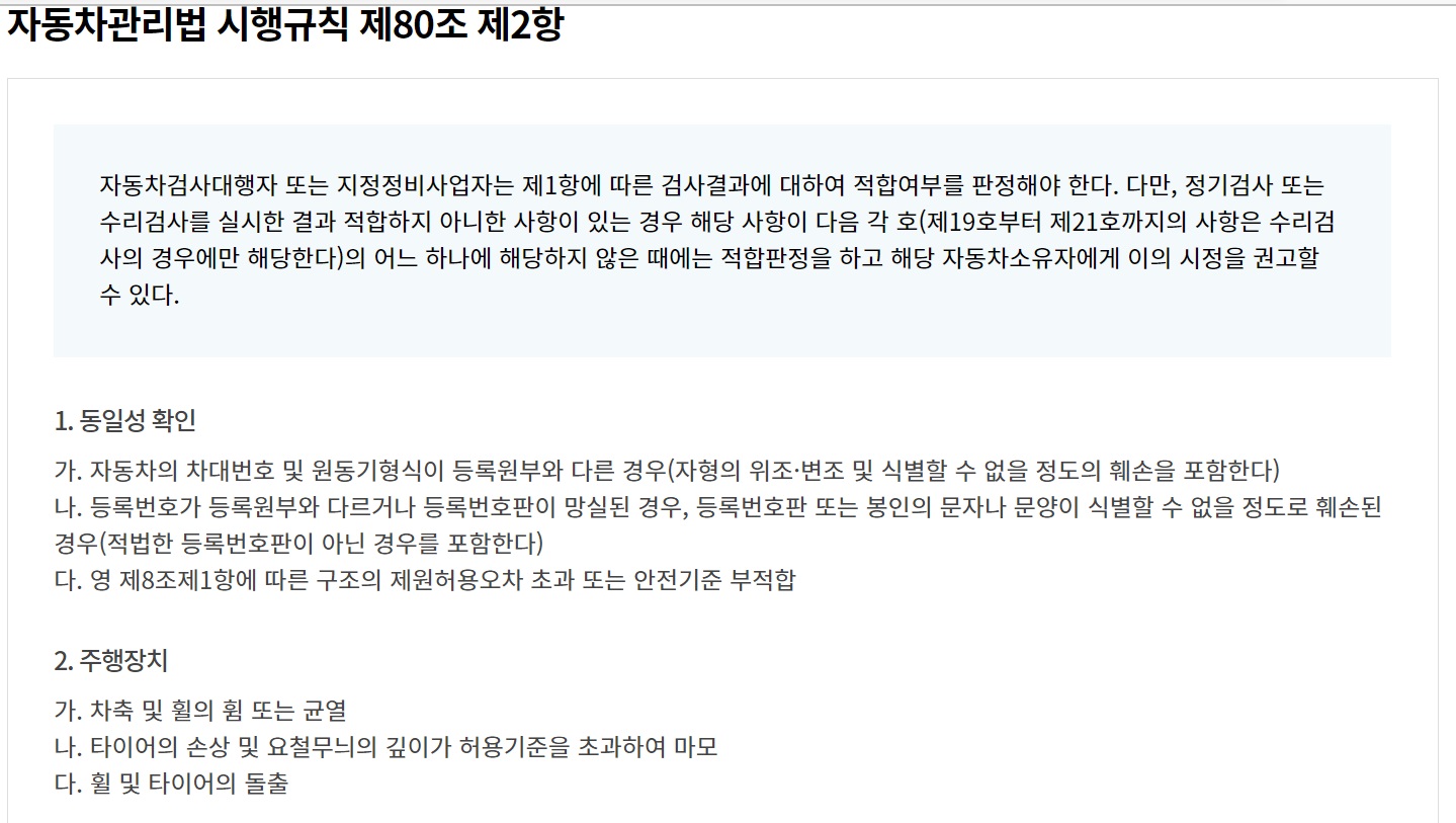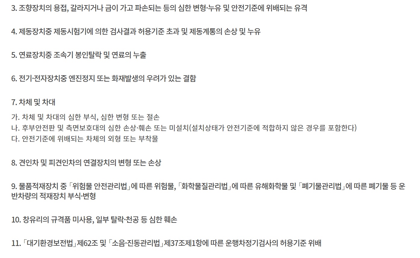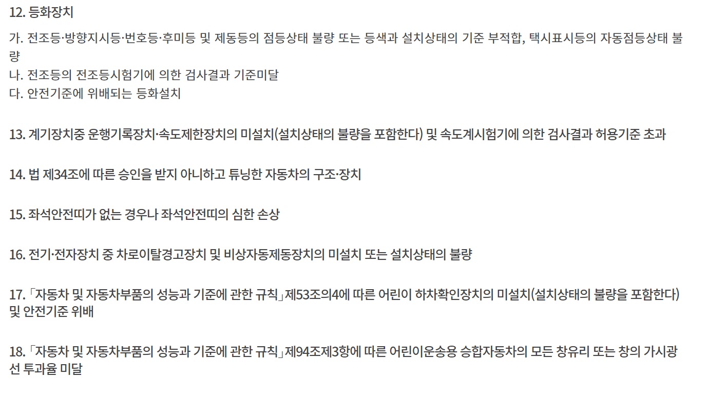 자동차검사 부적합 판정 항목은 아래와 같습니다.