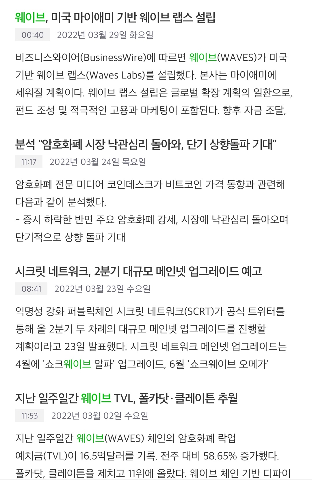 그리고 3월 29일인 오늘 웨이브 공식 트위터에 미국 호재(웨이브의 미국 진출 및 미국 고위 리더십 팀 발표)가 공개되었습니다. 웨이브가 미국 마이애미 기반 웨이브 랩스를 설립해 미국으로 진출한 호재가 3월 급등에 가장 큰 영향을 준 것으로 추측할 수 있습니다.
