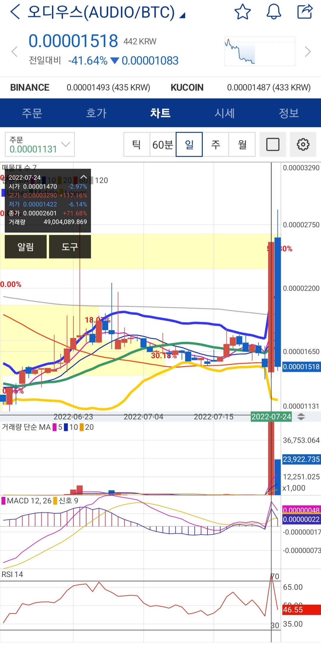 비트코인이 23k에서 떨어져 21k후반까지 내려갔는데 어제 업비트 BTC마켓에 상장된 오디우스가 100% 넘는 상승을 보였고 오늘은 BTC마켓에 상장된 하이브달러가 272% 약 3배 가까이 올라 거래대금 1순위였습니다. 이에 따라 업비트 원화마켓에 상장된 하이브코인도 20% 넘게 상승했습니다. 스냅 실적 부진으로 나스닥도 상황이 좋지 않지만 BTC마켓을 시작으로 이더리움 업그레이드가 다음 상승장을 견인하면 좋겠네요.