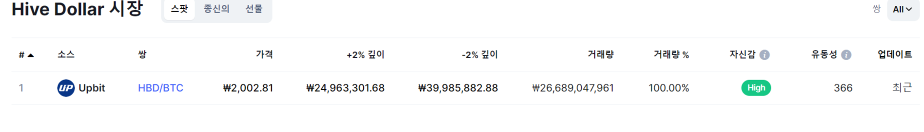 하이브달러가 바이낸스에 상장되기도 한 하이브코인과 다른 점은 업비트 BTC마켓에만 상장되었다는 점입니다. 시장 상황이 좋지 않은데도 오늘 같은 3배 가까운 놀라운 상승에는 업비트 원화상장이라든지 대형 거래소 상장 호재가 있을 법한데 아직 알려진 게 없네요. 업비트 거래량이 100%라 일시적인 펌핑일 수도 있지만 일 차트를 보면 골든크로스 이후 꾸준히 상승중이라 당분간 지켜보면 알겠죠.