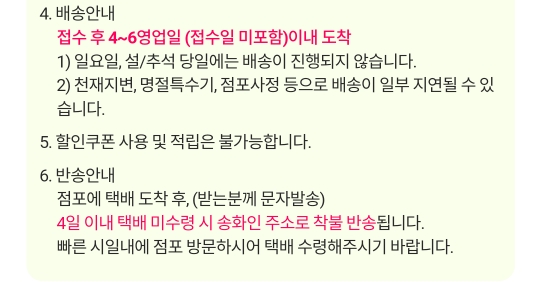 반값택배로 보낸 상품은 접수 후 4~6일 정도 걸립니다. 받는 분 근처 점포에 도착하면 알림톡이 발송되므로 반값택배 받는 법도 간단합니다.