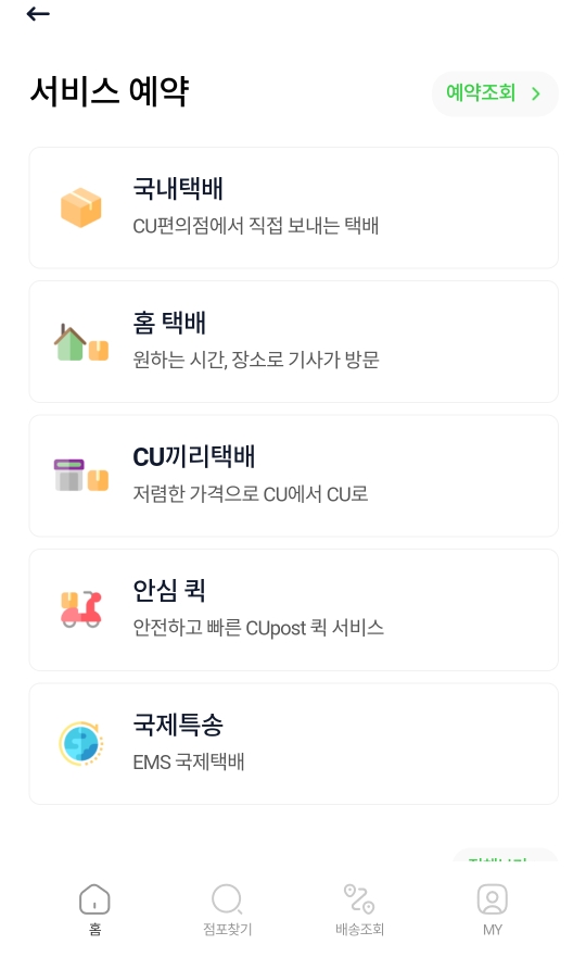 서비스 예약 중 국내택배가 아닌 cu끼리 택배를 누릅니다.