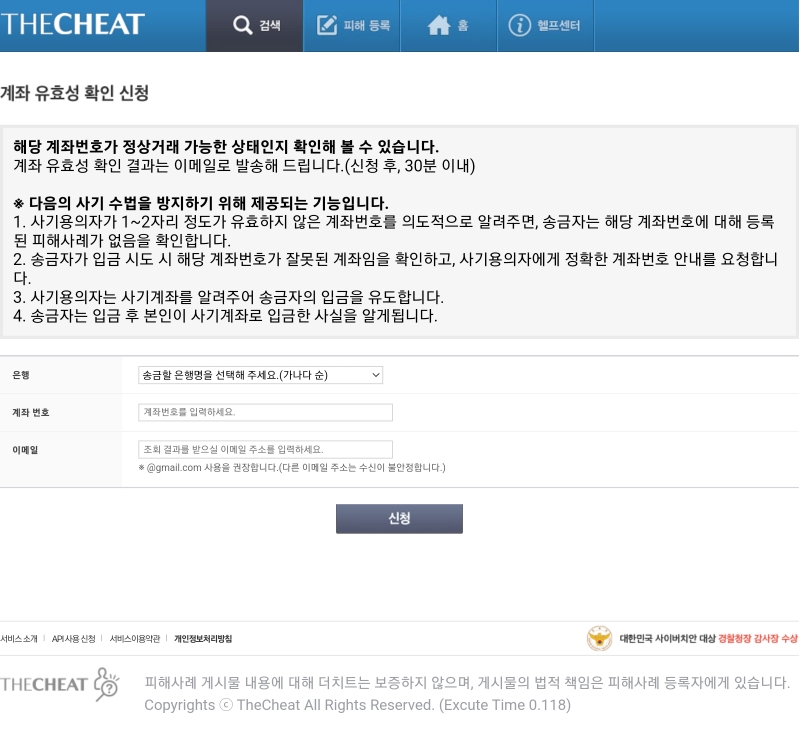 사이버수사대에 신고를 하더라도 직접 경찰서에 가야 하는 번거로움, 범인을 잡을 수 있다는 보장도 없어 동일범의 다른 소액 사기 피해 사례가 발생하지 않도록 더치트에 피해 사례를 등록했습니다.