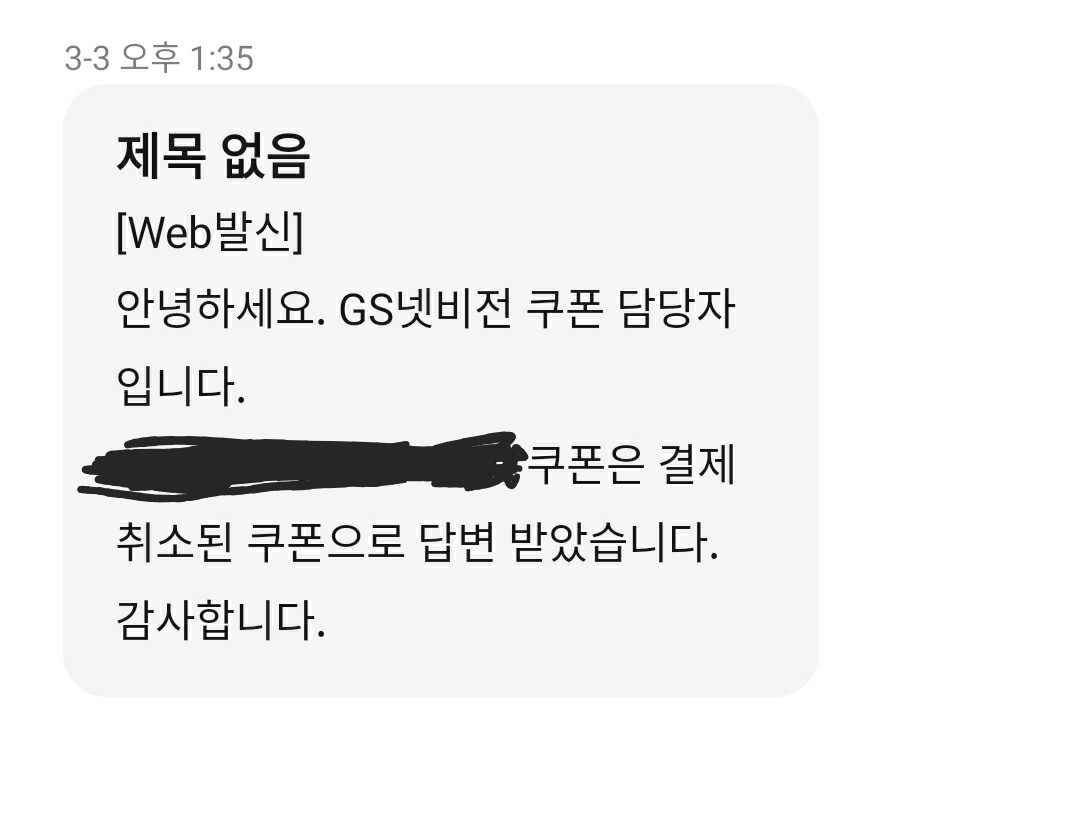 모바일 쿠폰 고객센터에 전화해 보니 카카오톡 선물하기 결제를 취소해 환불받은 쿠폰이라고 했습니다ㅠ이런 경우가 비일비재하다고 하니 모바일 상품권 직거래시 주의하시기 바랍니다.