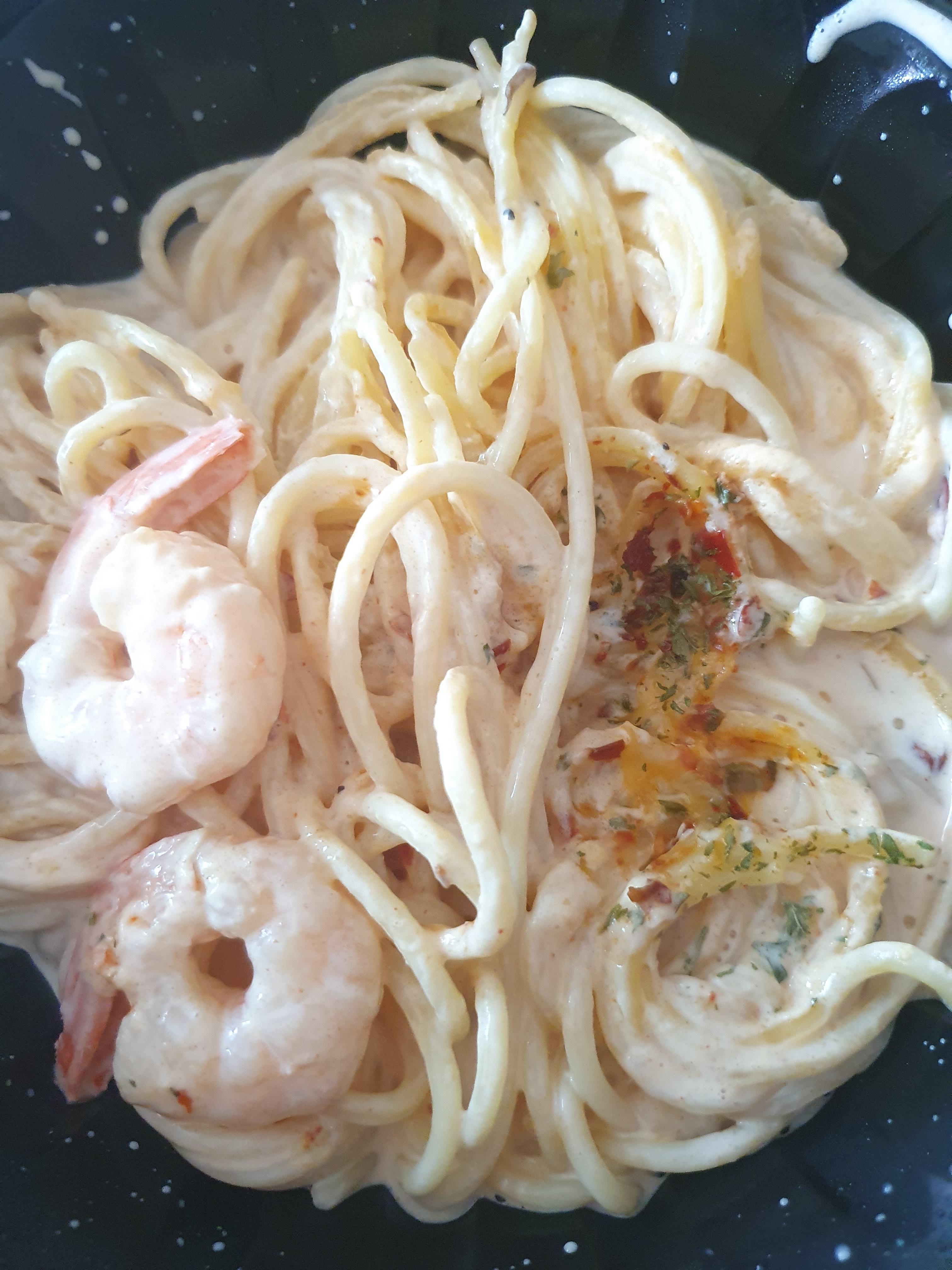 주로 투움바 파스타는 납작하고 두꺼운 면인 페투치네에 고춧가루를 넣어 고소하면서도 매콤한 맛이 특징인 크림 파스타입니다. 투움바 파스타에는 새우가 들어가기도 하고 베이컨을 넣기도 합니다.