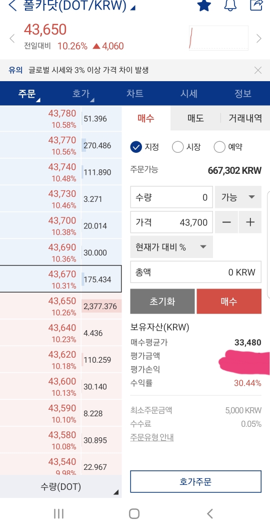 현재 시각 기준 폴카닷 시세는 어제보다 10% 오른 43000원 정도입니다. 저는 폴카닷(DOT)을 33480원에 매수하여 30%수익을 내고 있는데요, 앞으로가 더욱 기대되는 코인입니다. 며칠 전 30000원쯤에 사지 못한 게 아쉽네요. 마치 라이트코인(LTC)이 7만원 대에서 현재 20만원이 넘은 것 마냥 폴카닷도 10만원을 넘지 않을까 조심스레 예상합니다.