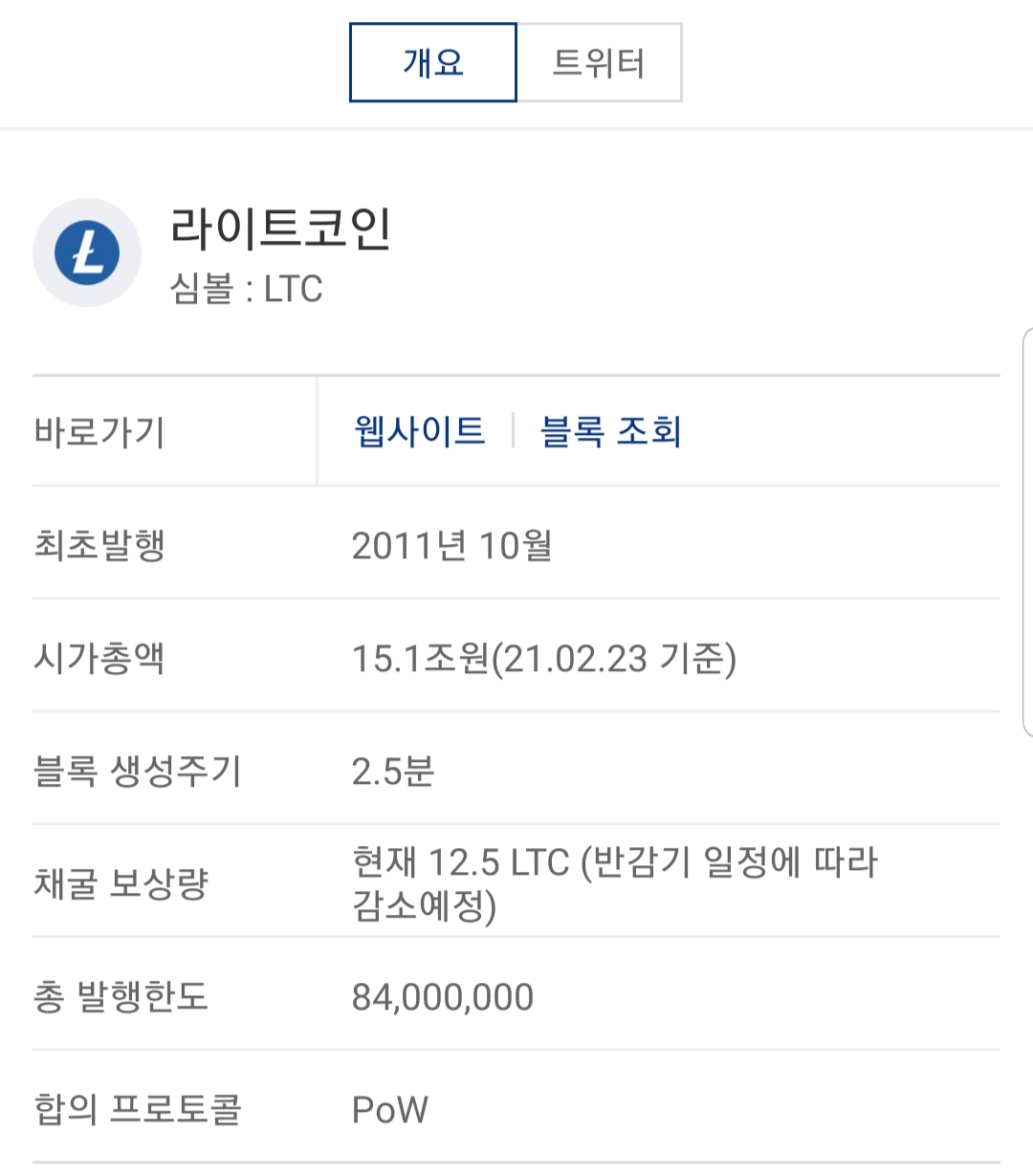 시총 15.1조원인 시총 6위 라이트코인은 작년 봄에 5만원대를 유지하다 여름부터 6~7만원대로 상승하였습니다. 그리고 제가 매수할 때였던 작년 12월 11일엔 78800원 정도였는데 12월 말부터 계속 상승하여 2월 20일 282450원 최고점을 달성하고 현재 비트코인 조정으로 인해 216050원까지 떨어졌다가 22만원 대를 유지하고 있습니다.