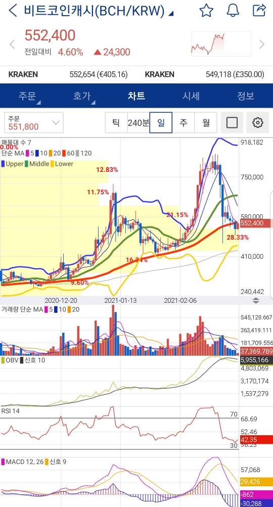 오늘 비트코인이 어제 종가보다 5% 가까이 상승한 5400만원 중반을 기록하니 전반적인 알트 코인들이 회복을 보이고 있습니다. 그에 따라 비트코인캐시(BCH) 또한 어제보다 4.6% 상승한 55만원대를 기록중인데요, 2021년 2월 20일 불과 열흘 전쯤에는 52주 최고가인 85만원을 기록했습니다. 비트코인캐시가 다시 최고가를 경신할지는 비트코인의 향후 행방에 달려있습니다.